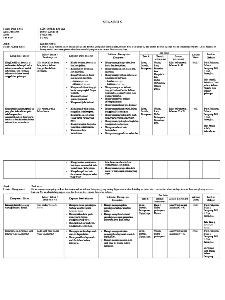 Silabus B Lampung 4 5 6 Smester 1