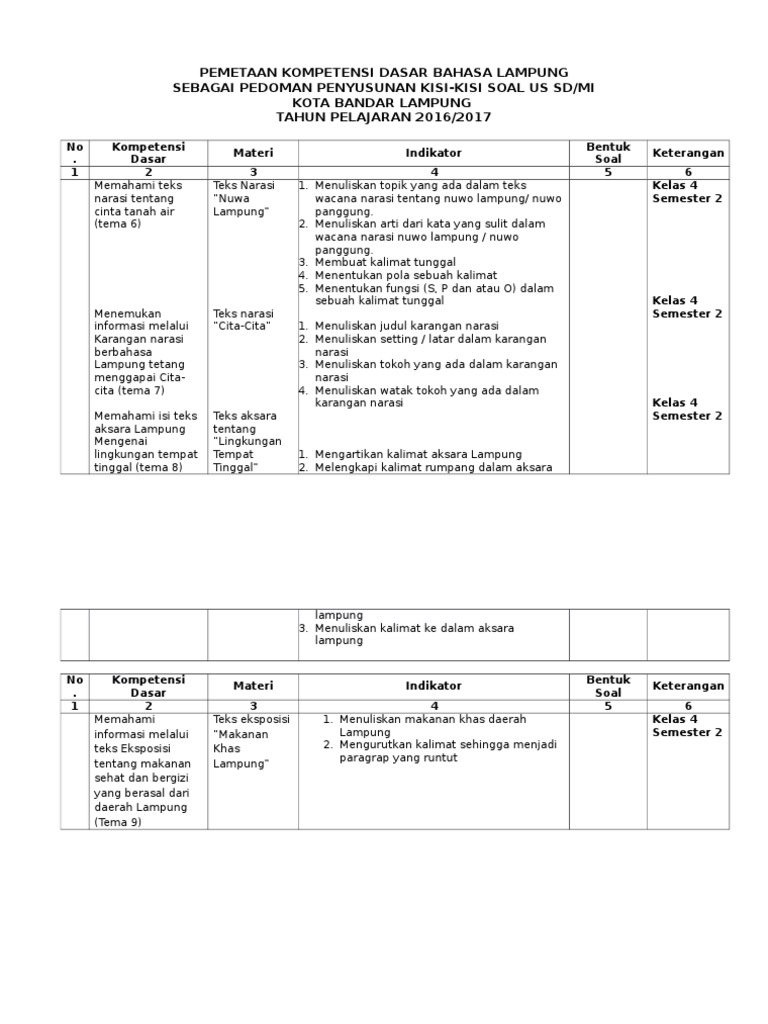 Pemetaan Kd Kisi Us Bahasa Lampung 2017