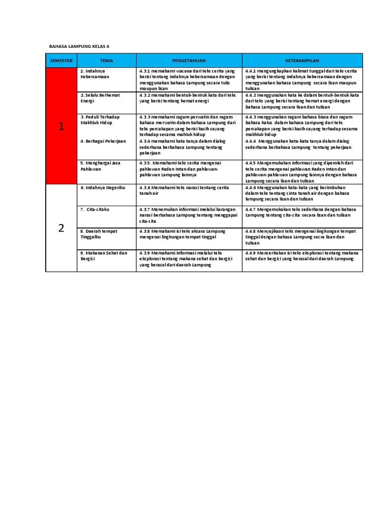 Pemetaan Kd Bahasa Lampung
