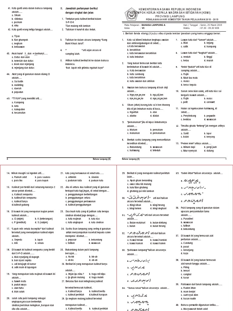 Pelajaran Bahasa Lampung Dan Bahan Tanya Jawab Untuk Siswa Sd Docx