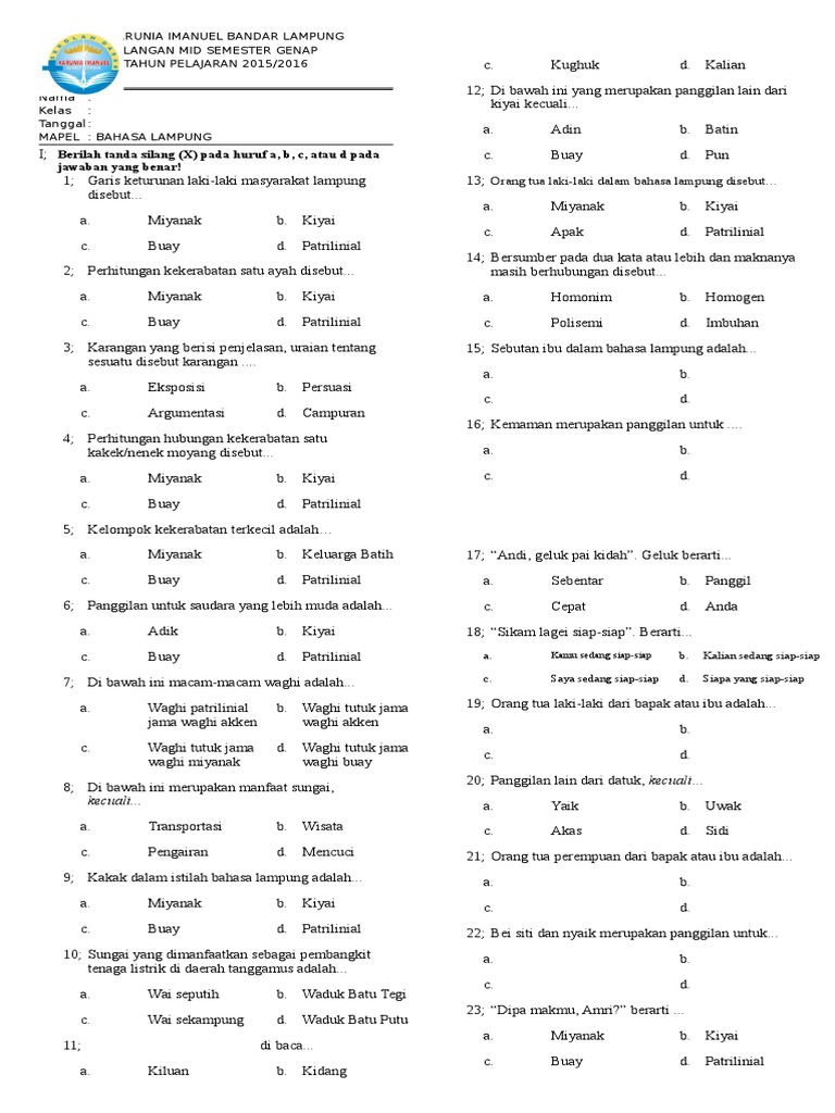 Pelajaran Bahasa Lampung Dan Bahan Tanya Jawab Untuk Siswa Sd Docx