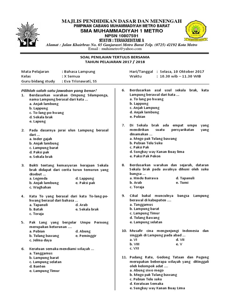 Bahasa Daerah Lampung Bima Bintang Akbar Academia Edu