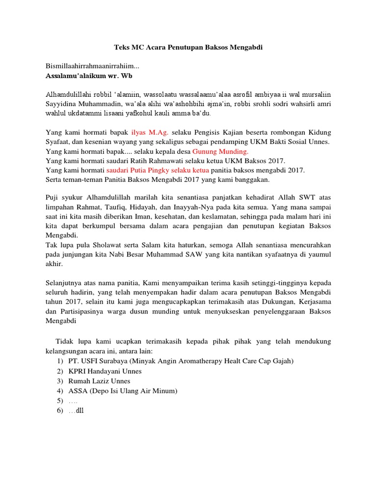 Teks Mc Penutupan Baksos Mengabdi