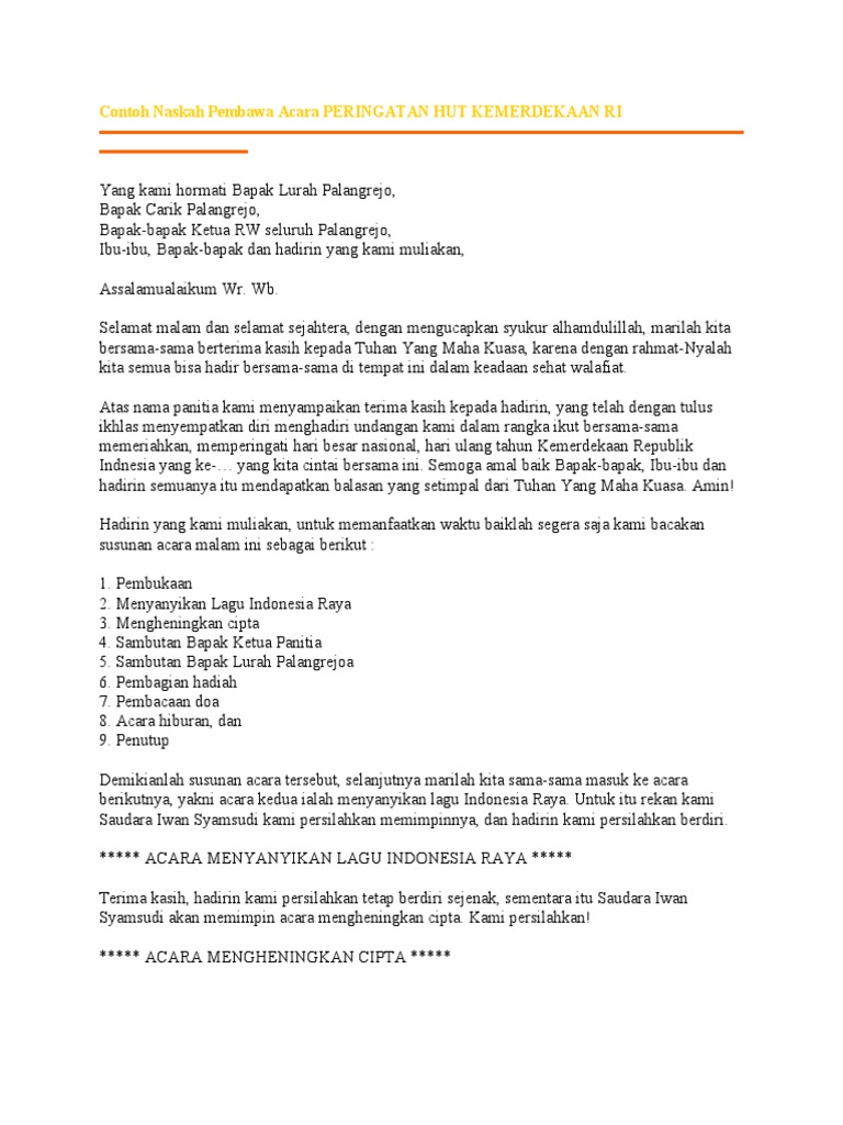 Contoh Naskah Pembawa Acara An Hut Kemerdekaan Ri