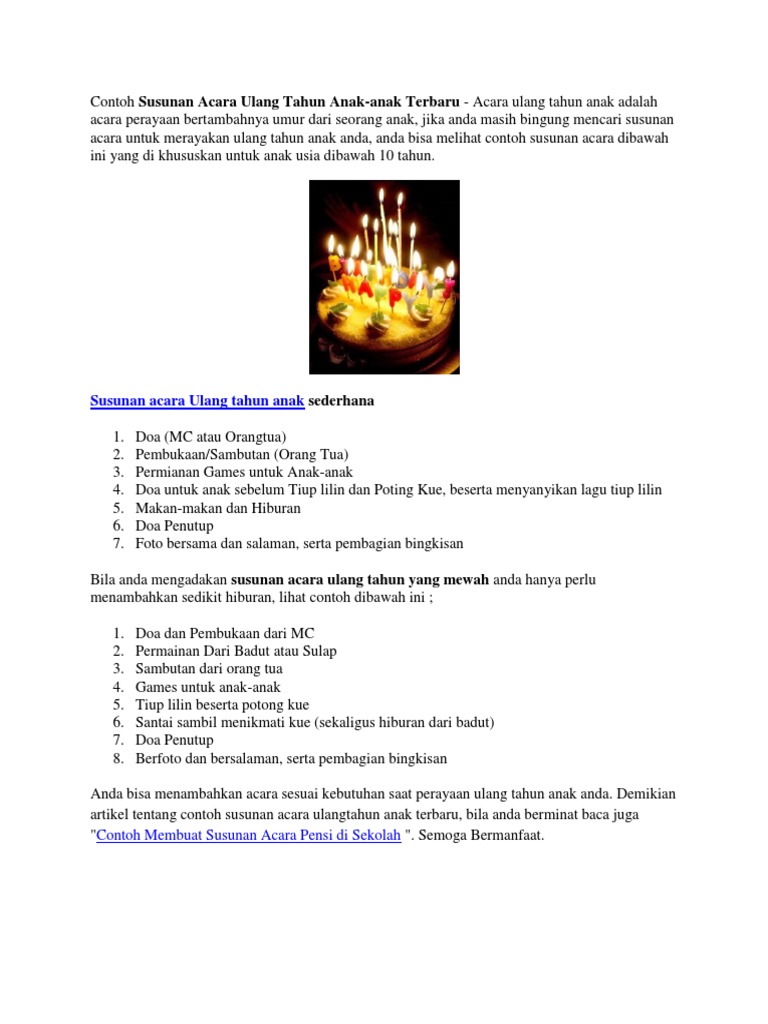 Contoh Susunan Acara Ulang Tahun Anak
