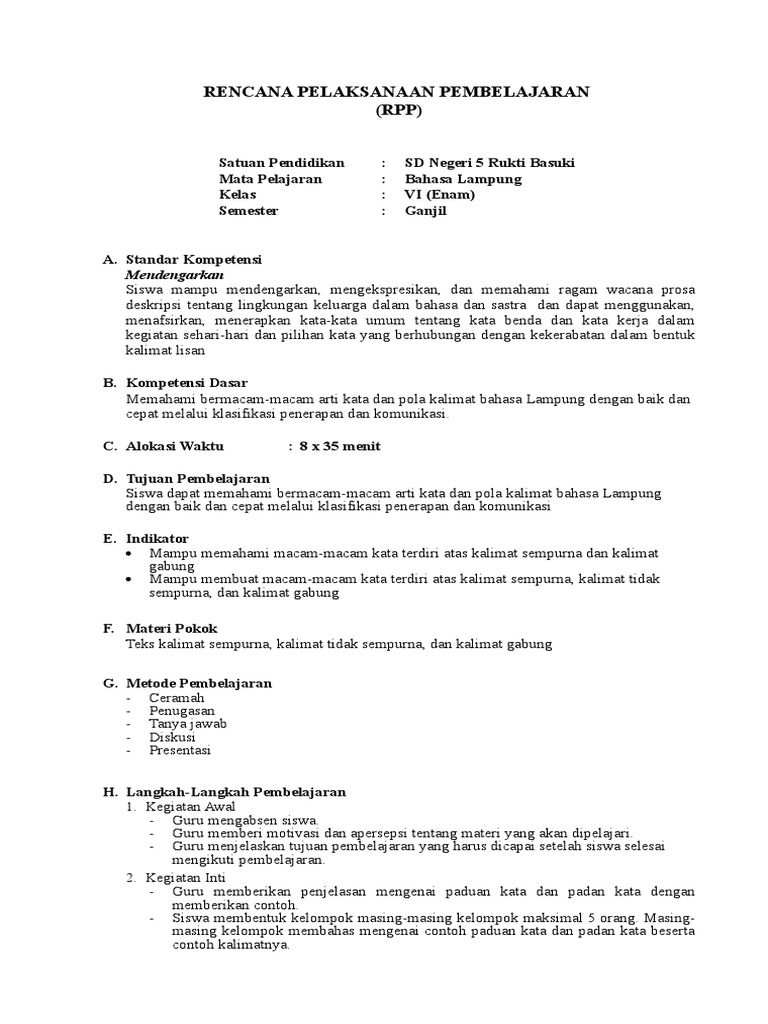 Pelajaran Bahasa Lampung Dan Bahan Tanya Jawab Untuk Siswa Sd Docx