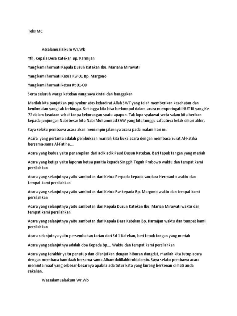 Doc Contoh Naskah Mc Untuk Acara Tujuh Belasan Linda Fatmawati